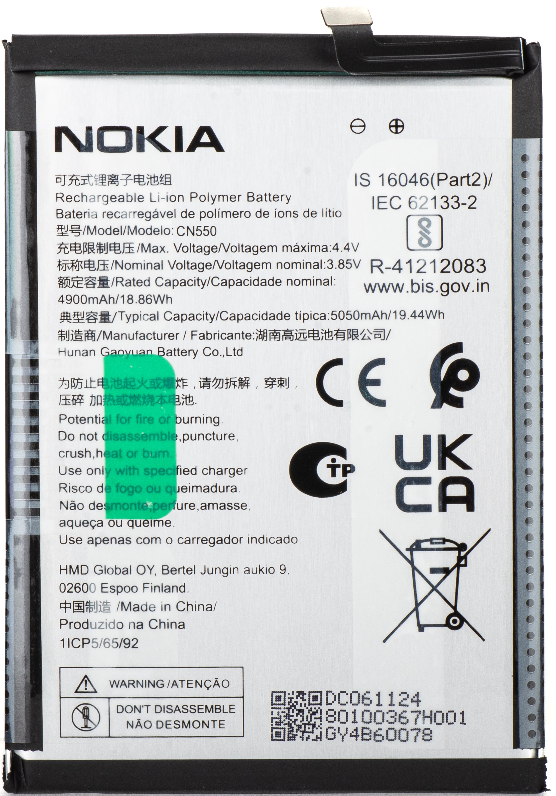 Battery Nokia G22, CN550, Service Pack 80100367H001
