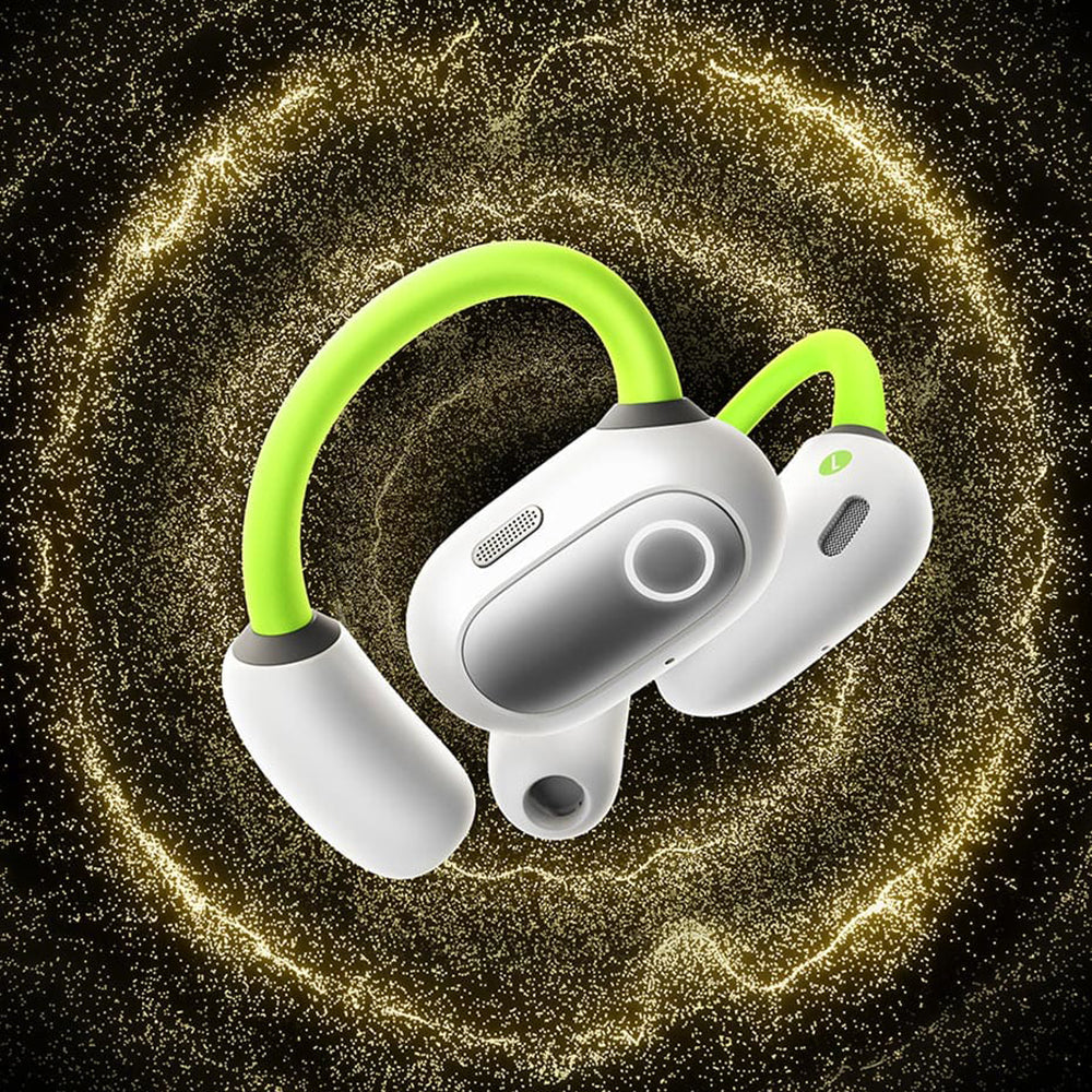 • The open-ear headphones are resistant to water drops, so you can wear them worry-free on a cloudy autumn day or at the pool in the summer.