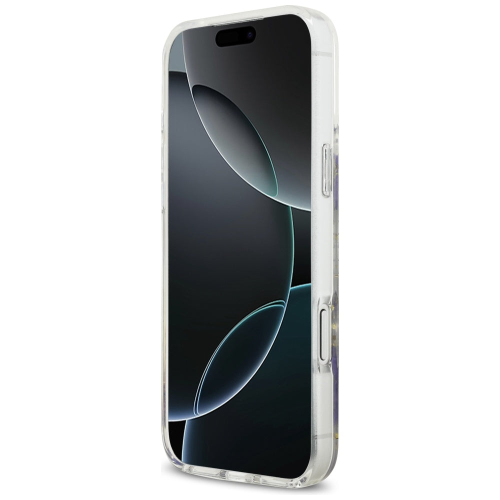 MagSafe Case for Apple iPhone 17 Pro Max, Guess, Resin Flowers and Glitter, Purple